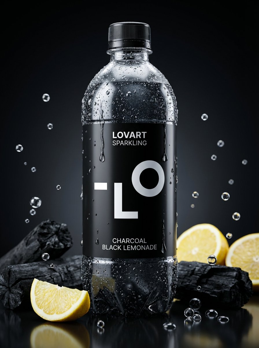This is a structured prompt designed to convert an input image (like an icon or logo) into a photorealistic product advertisement for a bottled drink. It instructs the AI to analyze the input image for its motif, atmosphere, and color palette, then design a corresponding beverage (e.g., fruit water, soda) and label, emphasizing professional studio photography, shallow depth of field, and 8k photorealism.