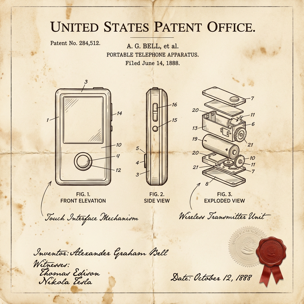 AI image generation prompt: Late 1800s United States Patent Office Document Prompt. Change invention as you need.